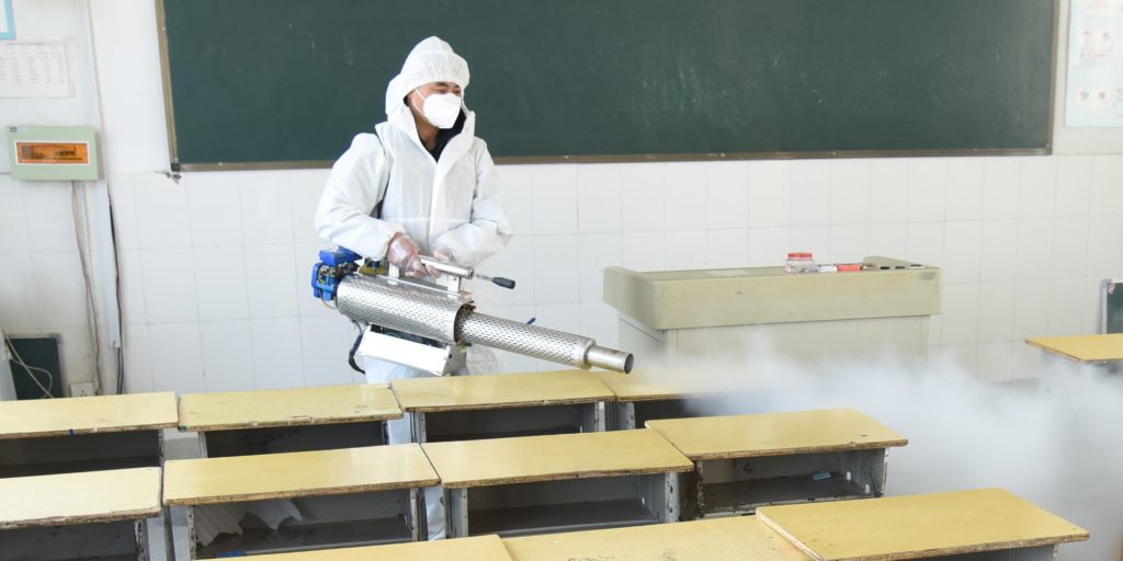 - Desinfectamos aulas, baños, areas recreativas, comedores, etc.